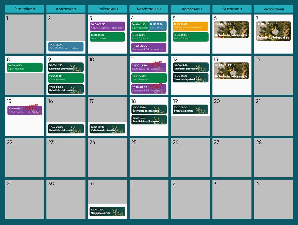Kviečiame šeimas su 1-5 metų į šventinius apsilankymus mūsų žaidimų kambaryje!